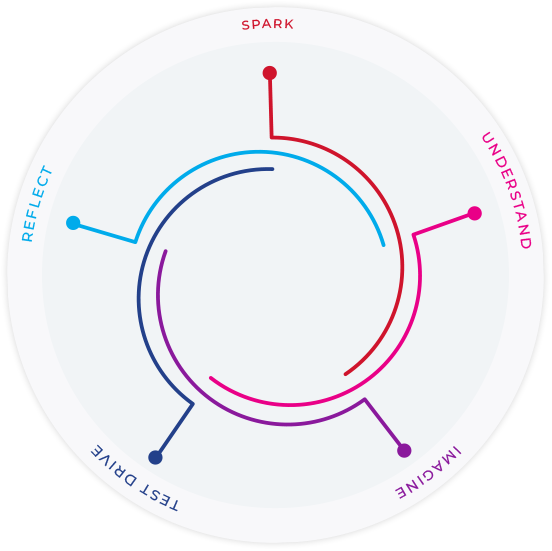 The Honda Innovations Design Thinking framework is organized into 5 phases and tailored to the people and projects at Honda. Use it as a guide to help you apply Design Thinking to solve your user’s problems.