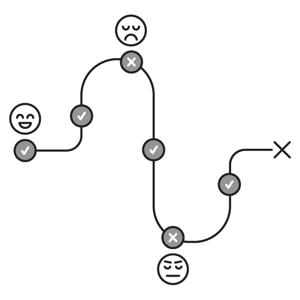 After you’ve added the user’s feelings, draw a line to connect each feeling. Once you’re done, you’ll see how the user’s perception of their experience changes over time.